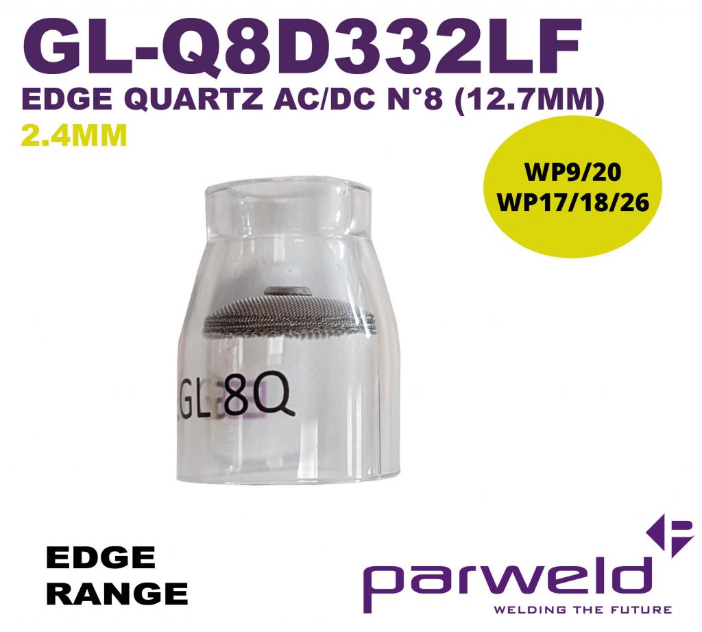 GL-Q8D332LF | EDGE Quartz (AC/DC TIG) Glazen cup N°8 (12.7mm) met gasverdeler voor 2.4mm wolfraam - WP9/20 en WP17/18/26 tigtoorts
